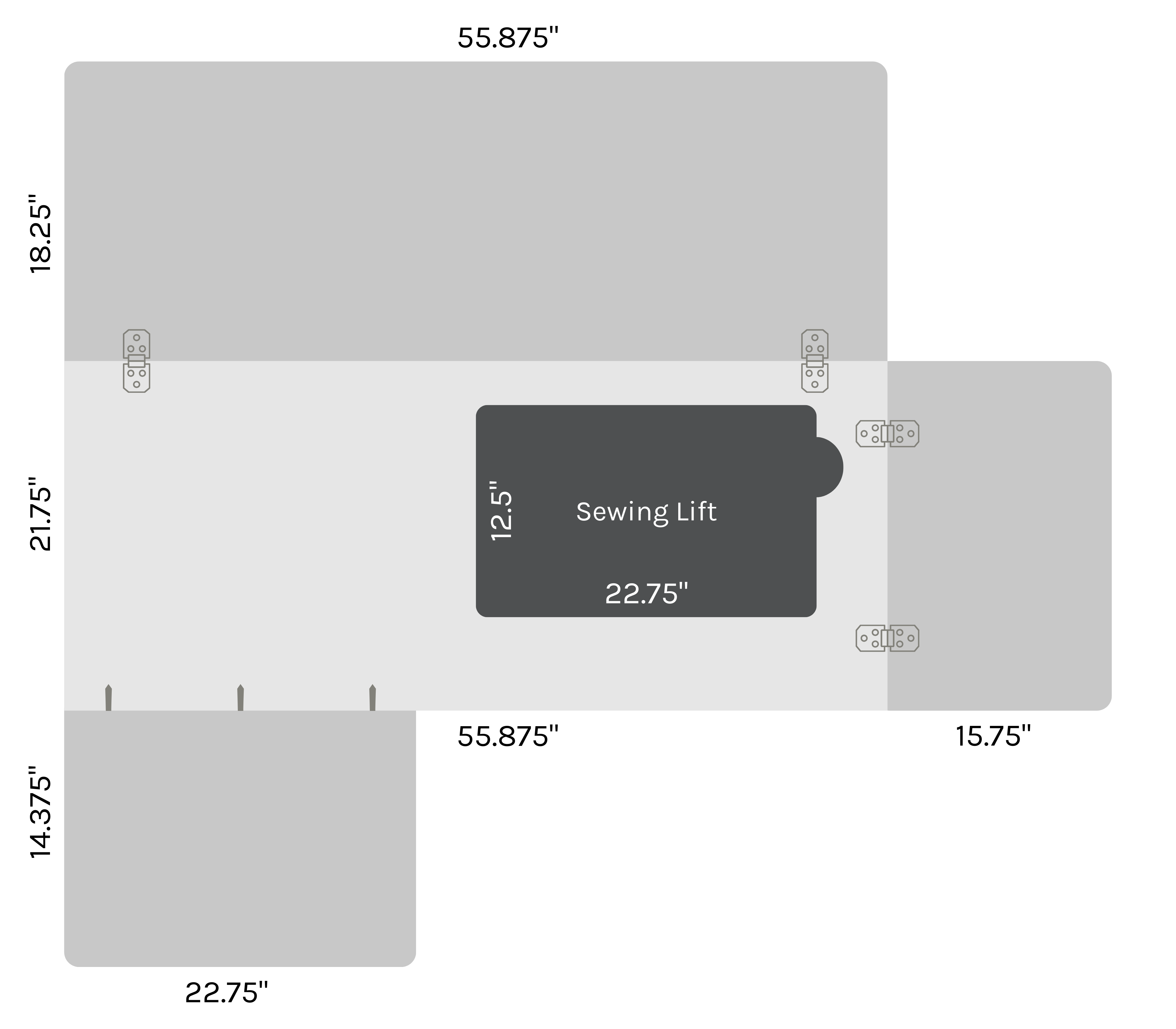 | Sewing Machine Drop in Opening Dimensions: | 23 ¾” W × 12 ½” D |