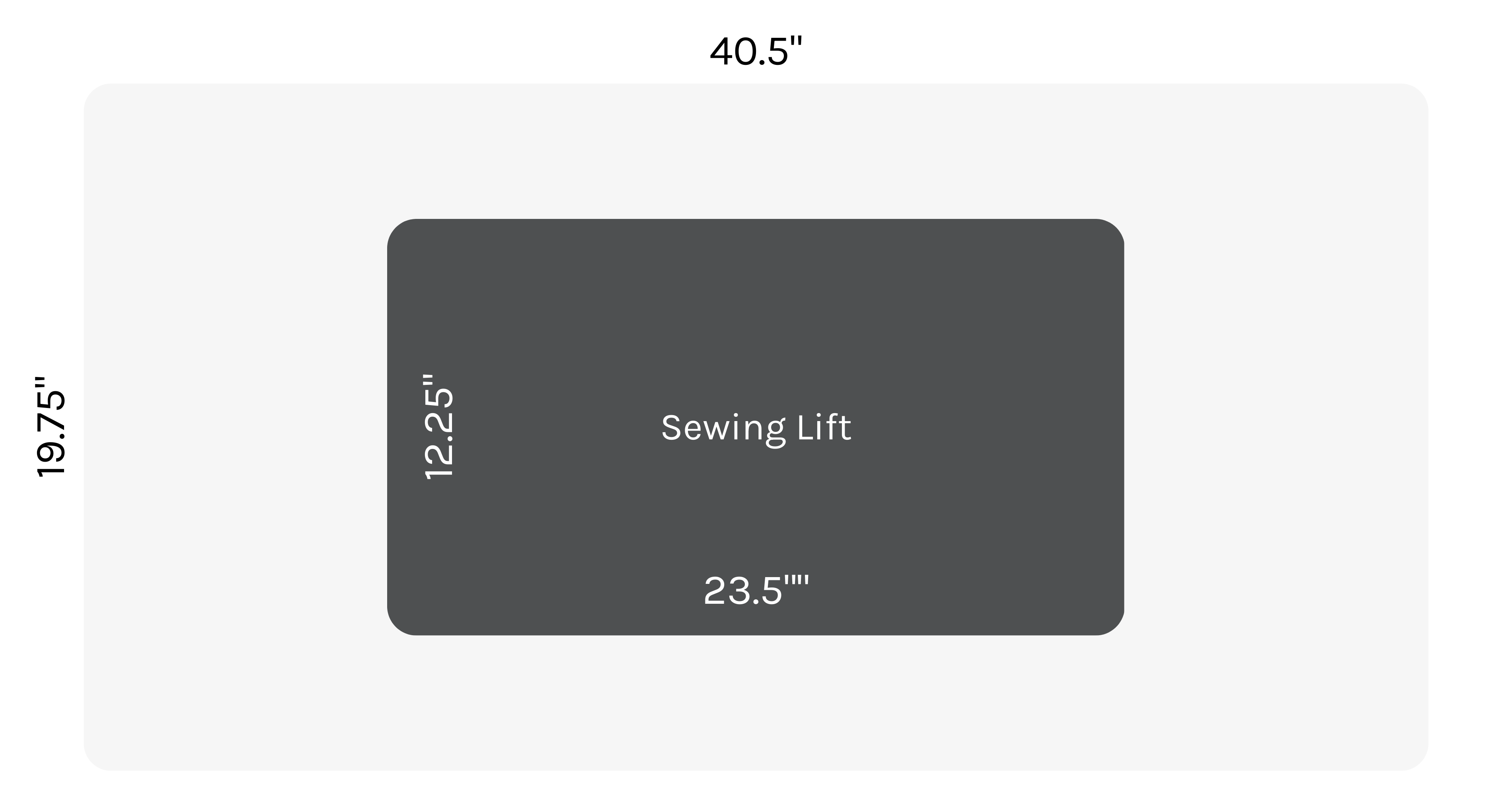 | Sewing Machine Drop in Opening Dimensions: | 23 ¾” W × 12 ½” D |
