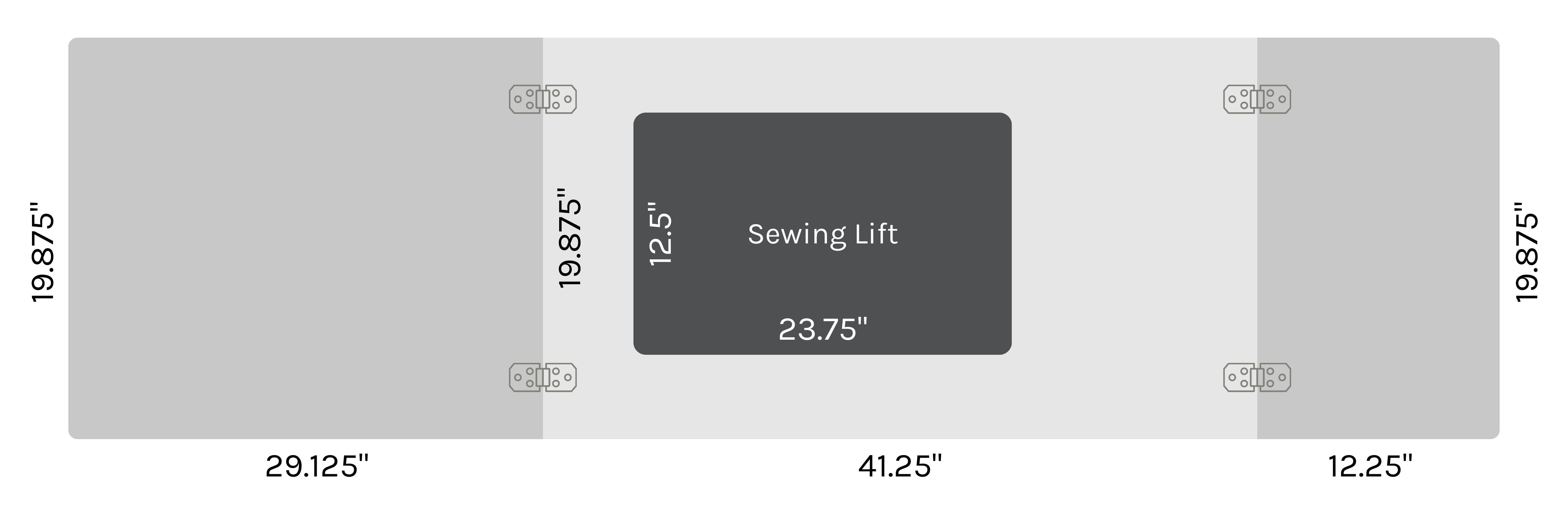 Sewing Machine Drop in Opening Dimensions: 23 ¾” W × 12 ½” D