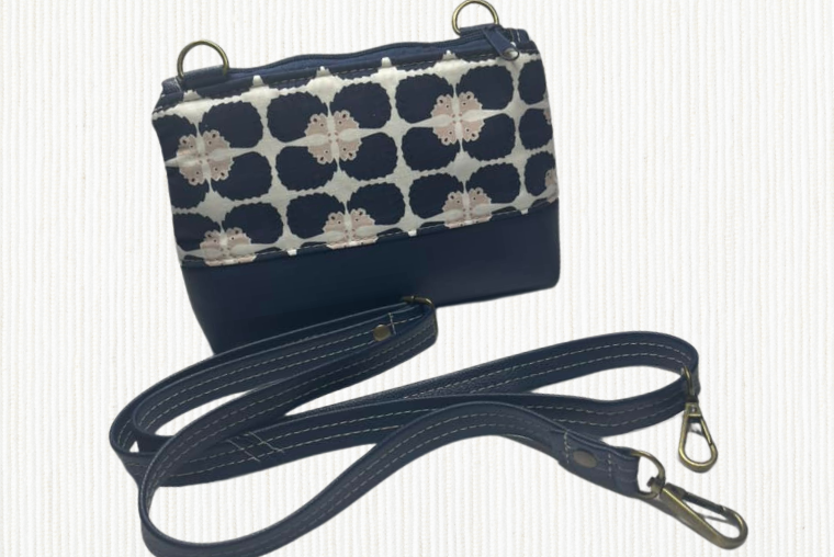 Our lovely Facebook Group member, JMC Mitchell, created this crossbody bag with faux leather on the bottom, quilt cotton on the top and interior, and used SF101 stabilizer with foam to add structure.