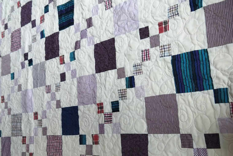 Our JJ's Facebook Group member, Helen W., men's shirts and upcycles cotton to create quilts on her DX-2000-QVP!
