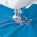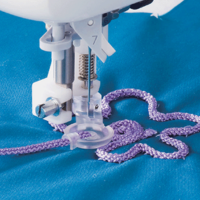- This presser foot has a hole for supplying cording to be sewn over. With the feed dogs lowered, you can freely move the fabric to create simple embroidery with cording.