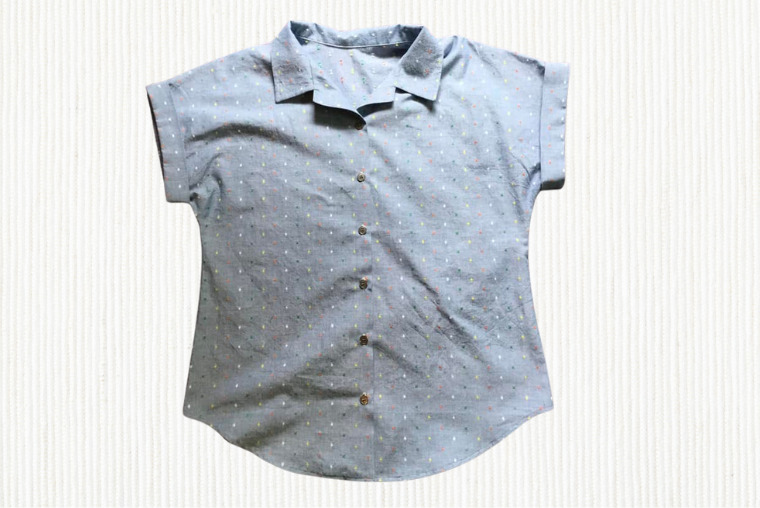 Joy T. created this chambray fabric shirt using pellon feather weight interfacing and her trusty DX-2000QVP!