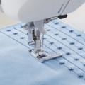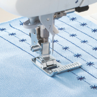 - You can also use tis presser foot as a guide when changing the needle position for hemstitching in a straight line.