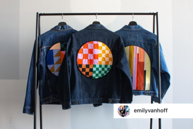 Juki ambassador @emilyvanhoff on IG never failes to dissapoint. What a great way to take a simple denim jacket and use your sewing skills, creativity, and the Juki F300 to create a one of a kind piece.