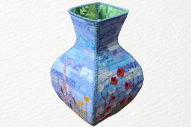 This beautiful fabric vase was created by Jacky R. She shared how many layers it took to create this project. Several layers of cotton, felt, Bonaweb interfacing, and free motion quilting on the flowers. Came together beautifully on her Juki F400. Great job Jacky!