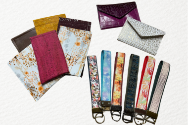 Tiiu K. shared these key fobs, a couple of wallets and some sunglass cases all created with her Juki F400. Use nonstick needles when sewing coated materials like cork and vinyl for defined stitches.