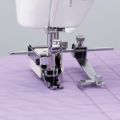For precise piecing, use the ¼” foot with a guide to ensure accuracy. When it’s time for straight-line quilting, attach the guide bar to keep your lines clean and even. Finish it off with ease and precision using the left compensating foot for binding.