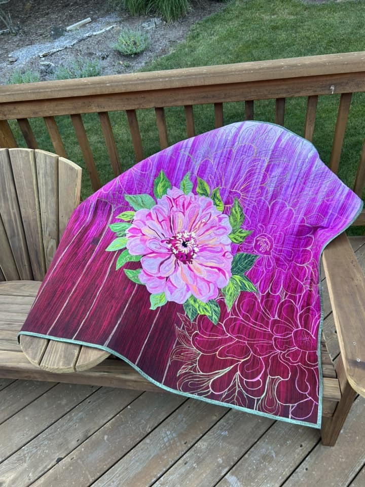 A queen-size quilt can be spread out with ease when using the Free Motion Quilting Table or even the Cutie Breeze Frame. This beautiful quilt was quilted by Stephanie S. — well done!