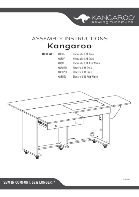 Kangaroo & Joey is a signature full-size sewing cabinet by Kangaroo Sewing Furniture featuring a 3-position lift (available with hydraulic or electric lift hardware), an expansive worksurface for large quilting projects, and a rolling storage caddy (Joey Storage Cabinet) for dynamic sewing and crafting storage! Kangaroo & Joey sits on heavy-duty casters for easy mobility and increased stability and features a collapsible quilt leaf to keep large quilting projects from falling to the floor!