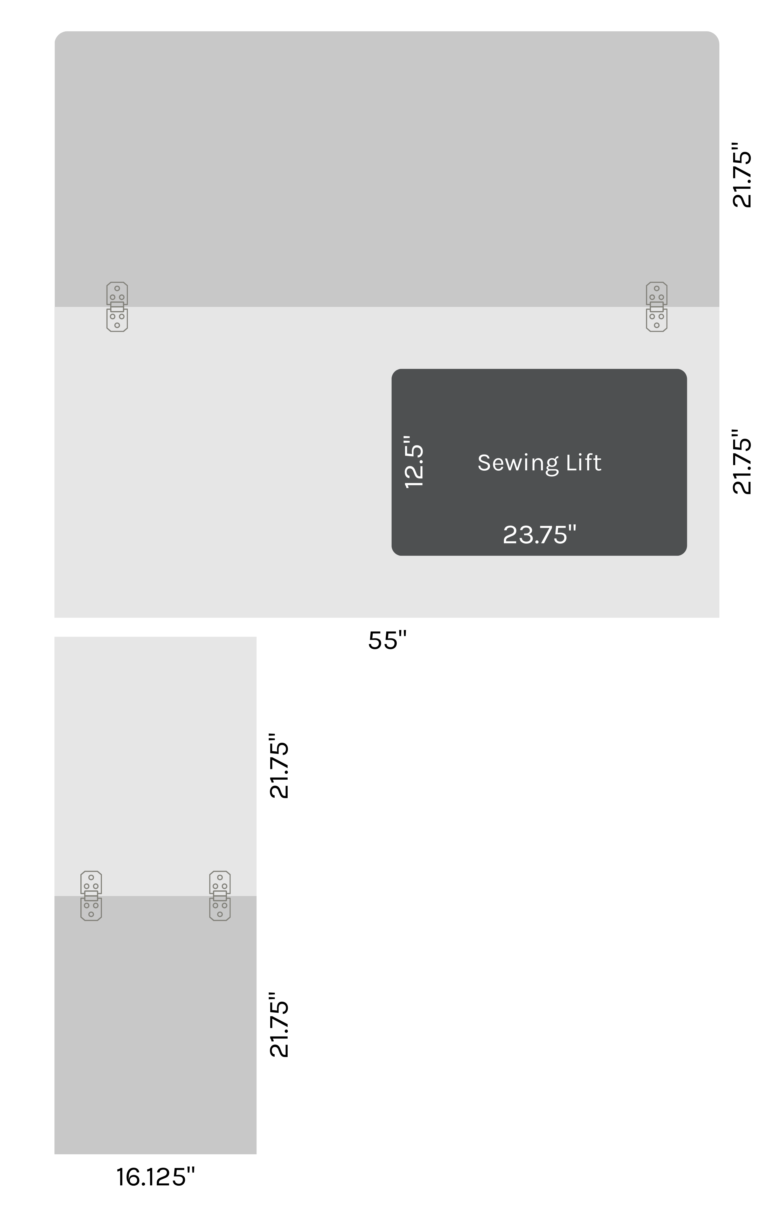 | Sewing Machine Drop in Opening: | 23 ¾” W × 12 ½” D |