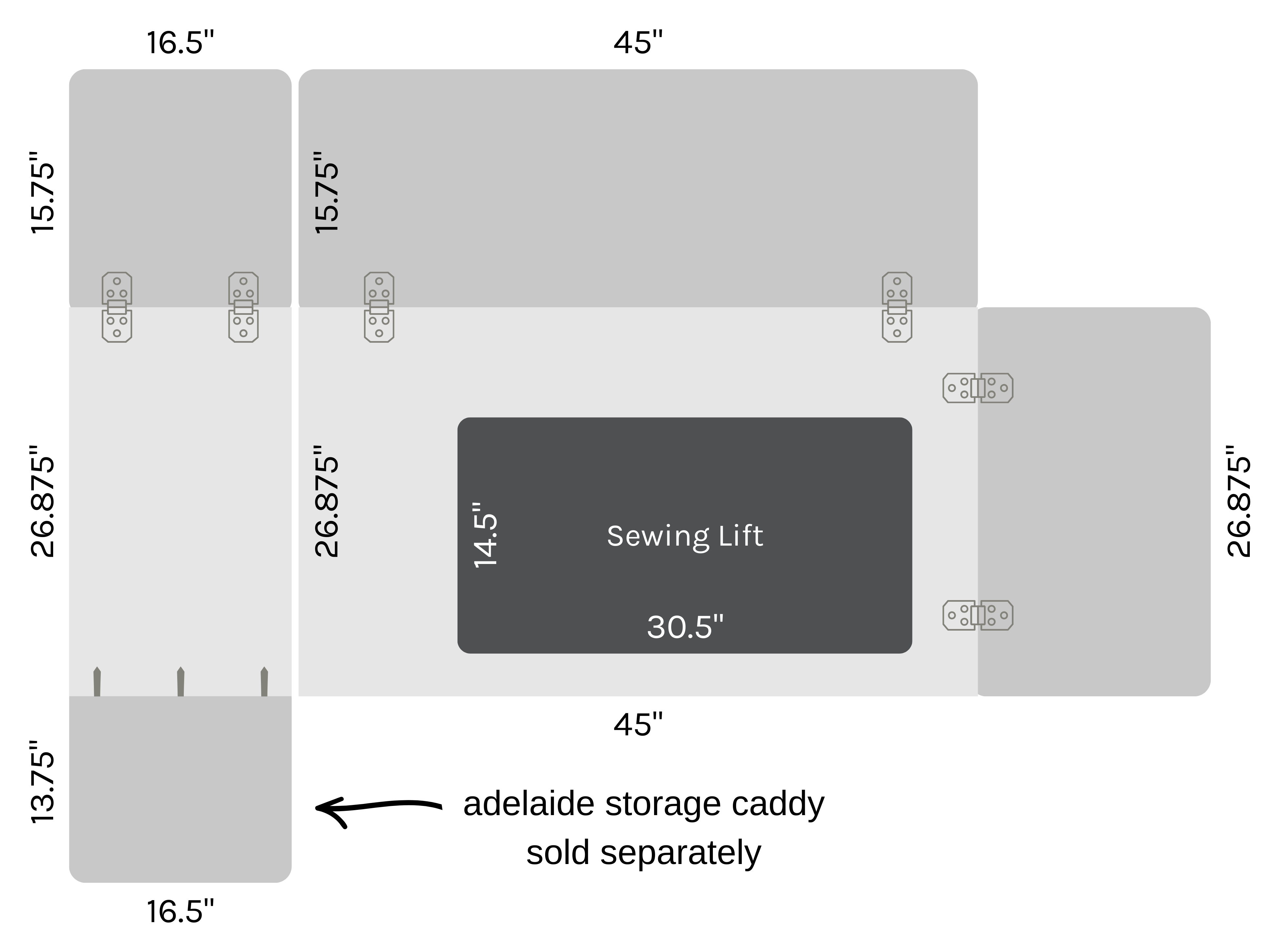 | Melbourne Sewing Cabinet Dimensions (closed): | 45” W × 26 ⅞” D × 30 ¼” H |