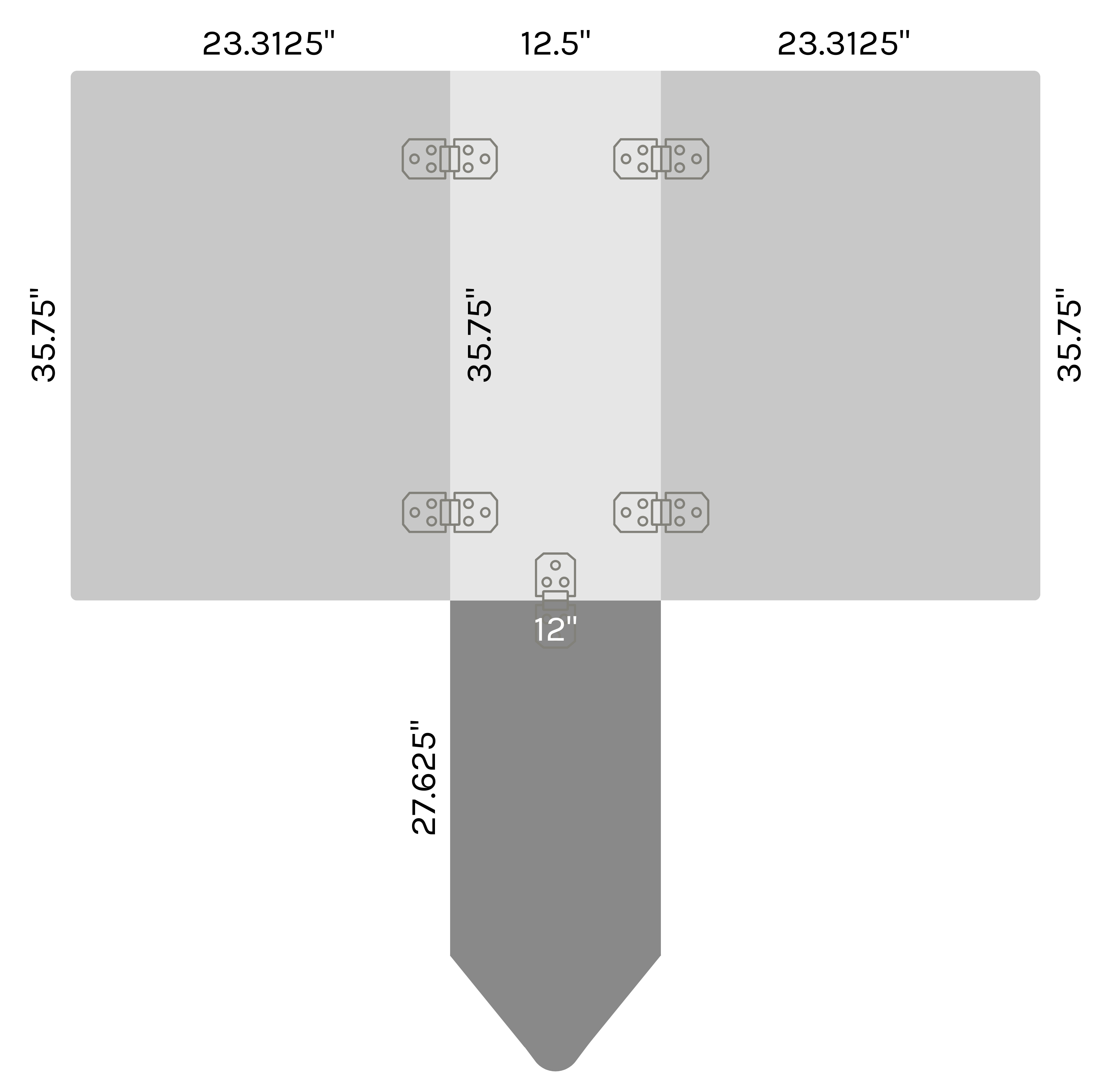 13 ¾” W × 37 ½” D × 36 ¼″ H |