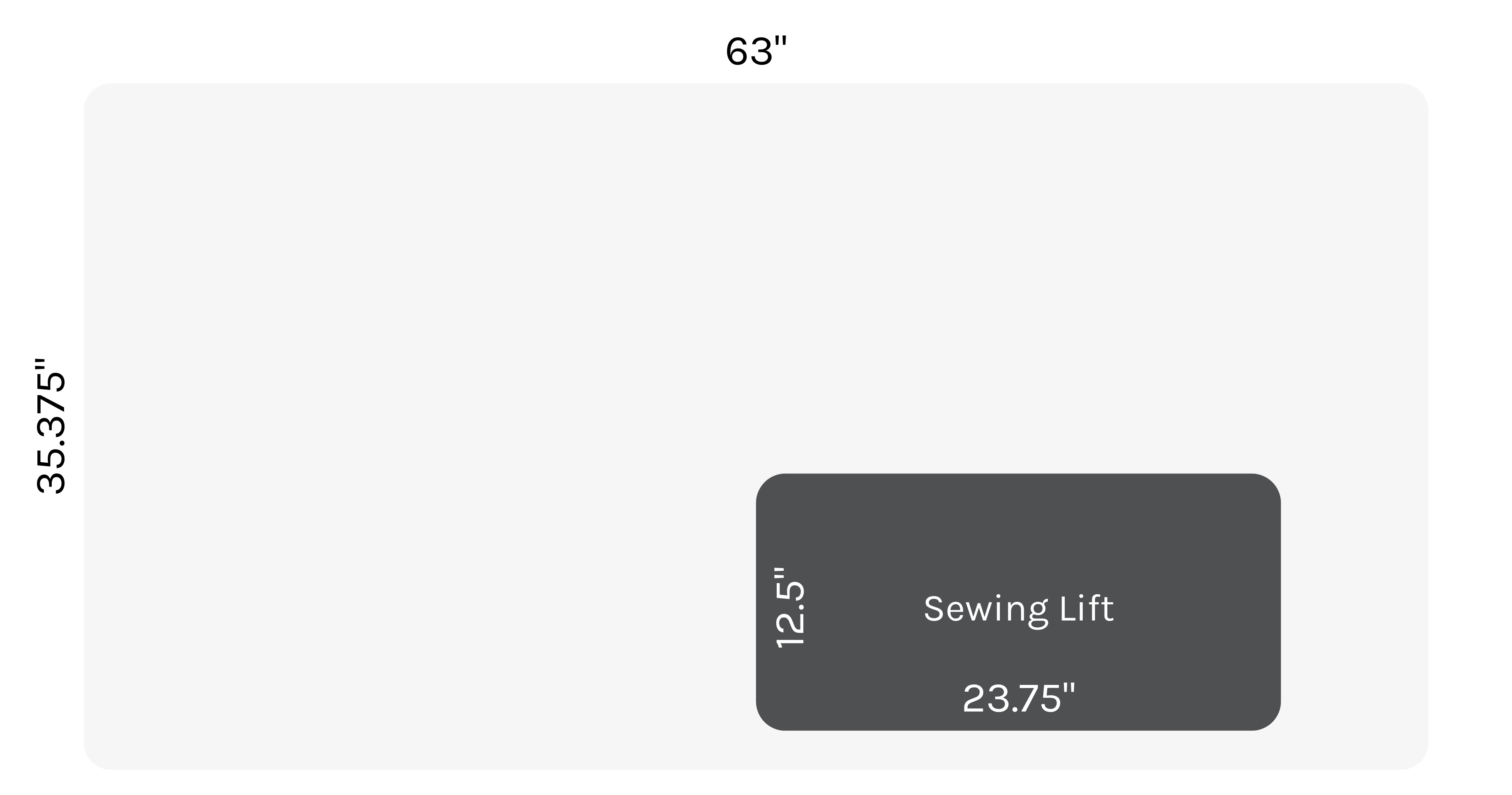| Sewing Machine Drop in Opening Dimensions: | 23 ¾” W × 12 ½” D |